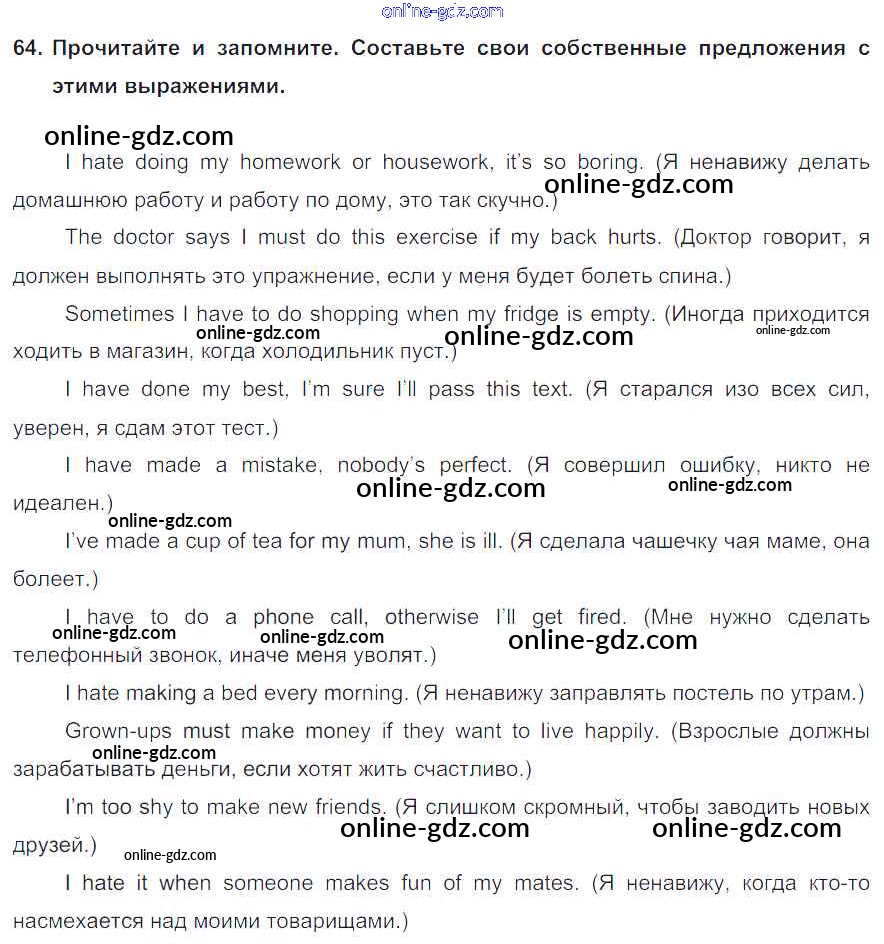 Готовые домашние задания по Английскому языку за 8 класс Учебник Биболетова, Трубанева Enjoy English 2015 - Section 5 Unit 4 64