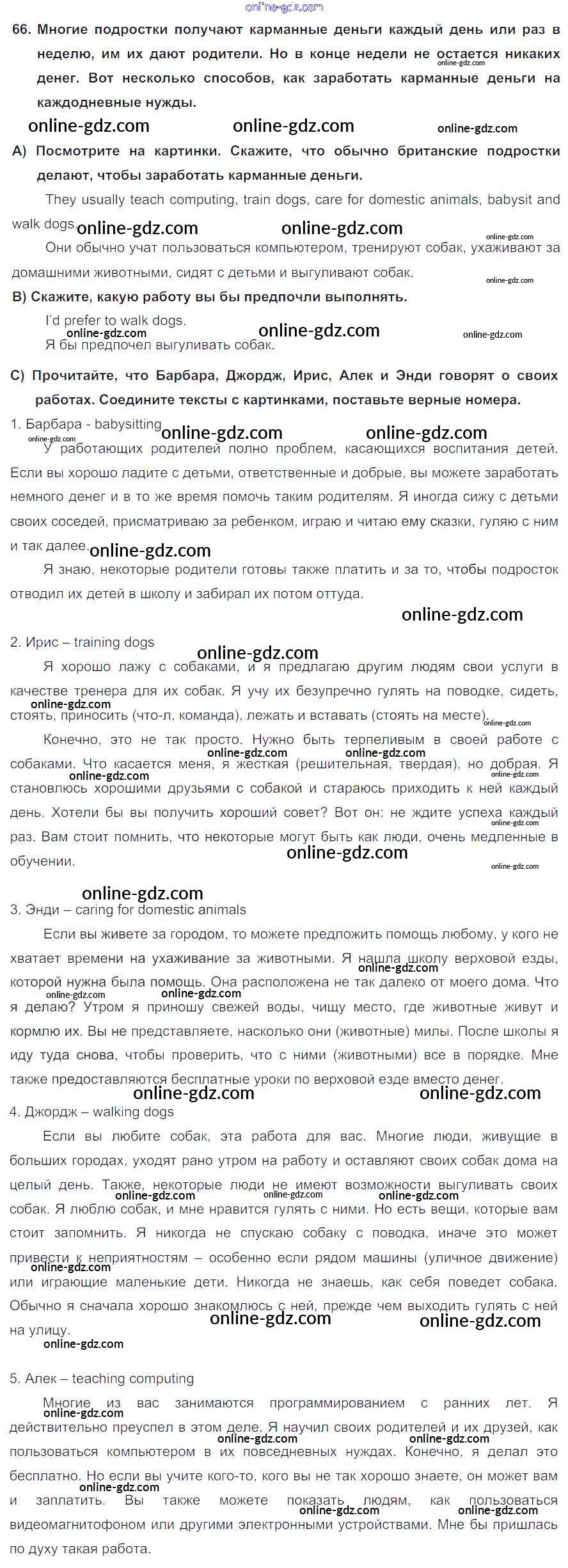 Готовые домашние задания по Английскому языку за 8 класс Учебник Биболетова, Трубанева Enjoy English 2015 - Section 5 Unit 4 66