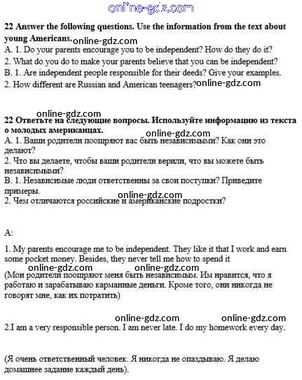 Готовые домашние задания по Английскому языку за 8 класс Учебник Биболетова, Трубанева Enjoy English 2015 - Homework Unit 4 22