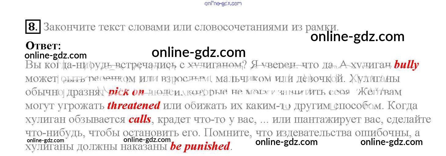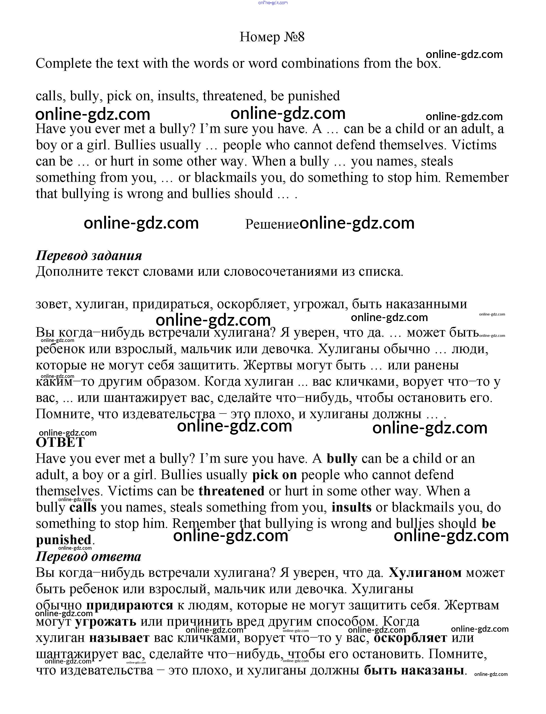 Готовые домашние задания по Английскому языку за 8 класс Учебник Биболетова, Трубанева Enjoy English 2015 - Homework Unit 4 8