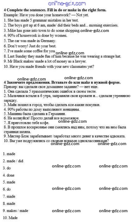 Готовые домашние задания по Английскому языку за 8 класс Учебник Биболетова, Трубанева Enjoy English 2015 - Progress check Unit 4 4