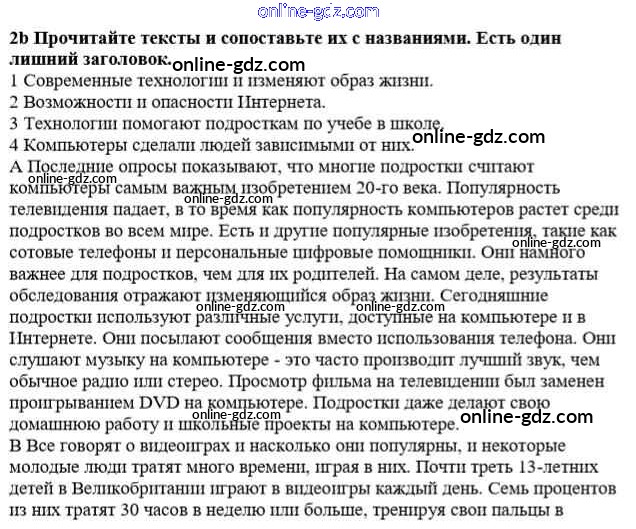 Готовые домашние задания по Английскому языку за 8 класс Учебник Дворецкая, Казырбаева New Millennium 2014 - Урок 2 Unit 1. A teenager's word 2b