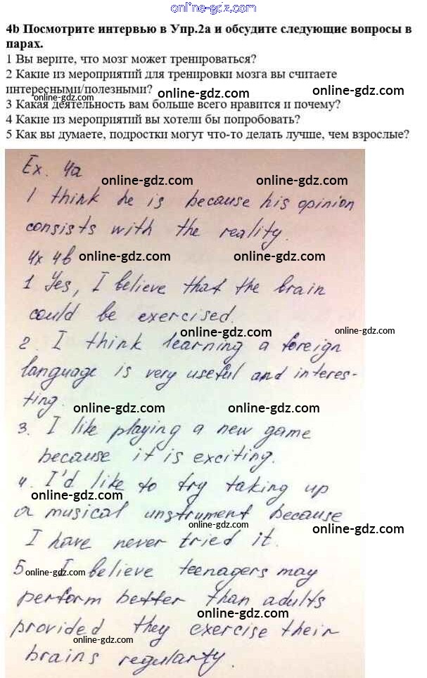 Готовые домашние задания по Английскому языку за 8 класс Учебник Дворецкая, Казырбаева New Millennium 2014 - Урок 3 Unit 1. A teenager's word 4b