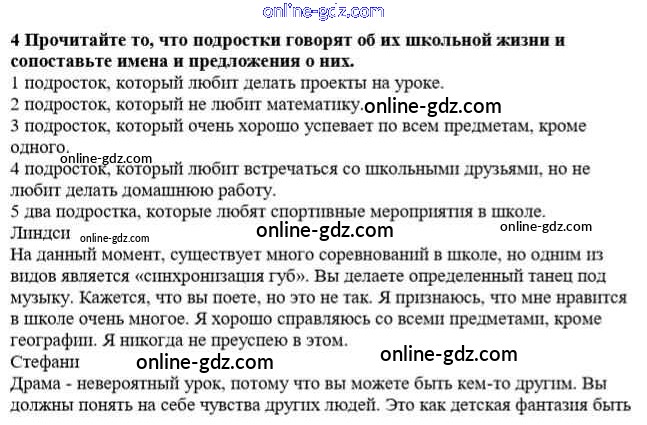 Готовые домашние задания по Английскому языку за 8 класс Учебник Дворецкая, Казырбаева New Millennium 2014 - Урок 7 Unit 1. A teenager's word 4