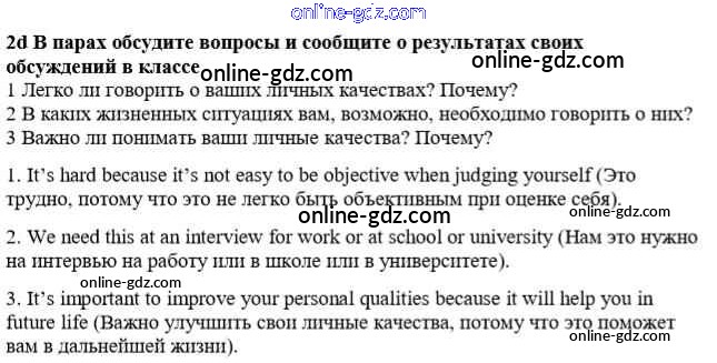Готовые домашние задания по Английскому языку за 8 класс Учебник Дворецкая, Казырбаева New Millennium 2014 - Урок 1-2 Unit 3. Discover yourself 2d
