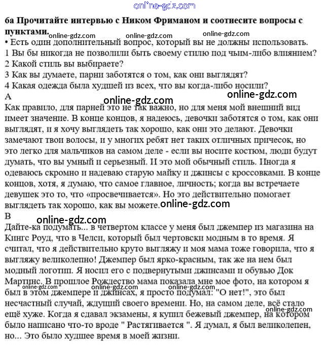 Готовые домашние задания по Английскому языку за 8 класс Учебник Дворецкая, Казырбаева New Millennium 2014 - Урок 7 Unit 3. Discover yourself 6a