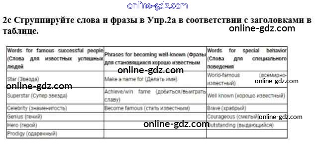 Готовые домашние задания по Английскому языку за 8 класс Учебник Дворецкая, Казырбаева New Millennium 2014 - Урок 1-2 Unit 4. People who stand out 2c