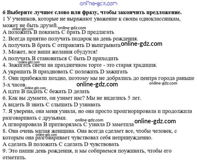Готовые домашние задания по Английскому языку за 8 класс Учебник Дворецкая, Казырбаева New Millennium 2014 - Урок 7 Unit 7. Being together 6