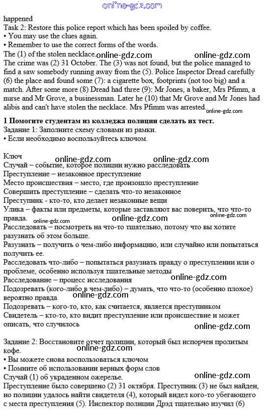 Готовые домашние задания по Английскому языку за 8 класс Учебник Дворецкая, Казырбаева New Millennium 2014 - Урок 4 Unit 8. Investigation in progress 1