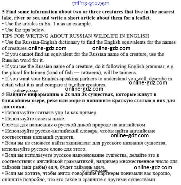 Готовые домашние задания по Английскому языку за 8 класс Учебник Дворецкая, Казырбаева New Millennium 2014 - Урок 3-4 Unit 9. The blue planet 5
