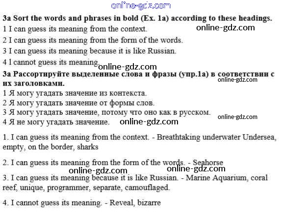 Готовые домашние задания по Английскому языку за 8 класс Учебник Дворецкая, Казырбаева New Millennium 2014 - Урок 3-4 Unit 9. The blue planet 3a