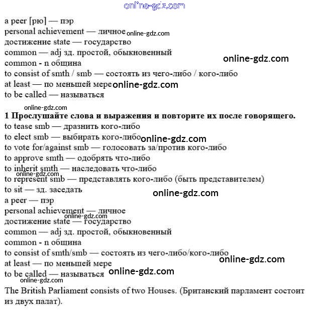 Готовые домашние задания по Английскому языку за 8 класс Учебник Кауфман Happy English 2012 - Урок 5-6 Unit 2. The British Parliament 1
