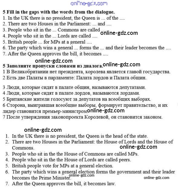 Готовые домашние задания по Английскому языку за 8 класс Учебник Кауфман Happy English 2012 - Урок 5-6 Unit 2. The British Parliament 5