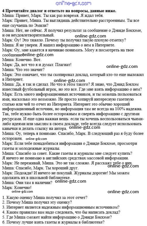 Готовые домашние задания по Английскому языку за 8 класс Учебник Кауфман Happy English 2012 - Урок 1 Unit 5. Find your way in the world of information 4