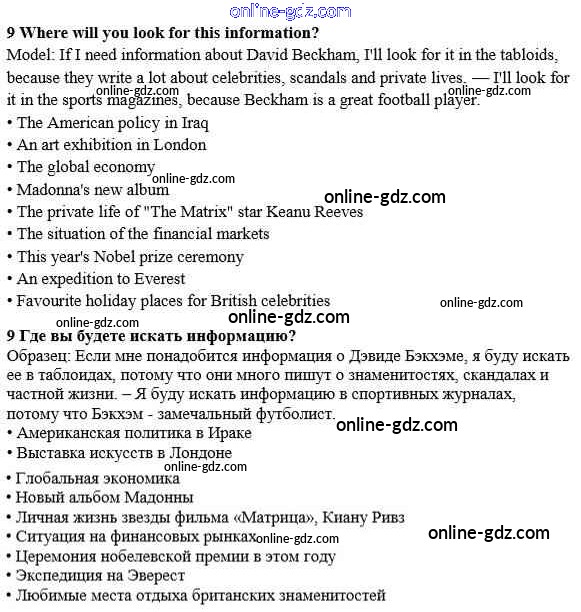 Готовые домашние задания по Английскому языку за 8 класс Учебник Кауфман Happy English 2012 - Урок 2 Unit 5. Find your way in the world of information 9