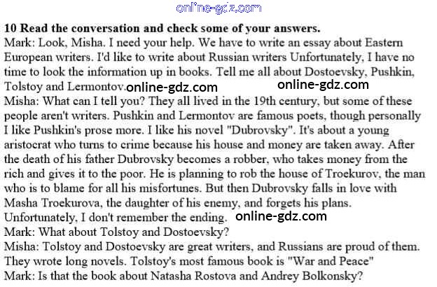 Готовые домашние задания по Английскому языку за 8 класс Учебник Кауфман Happy English 2012 - Урок 1-2-3 Unit 7. Russian writers and poets 10