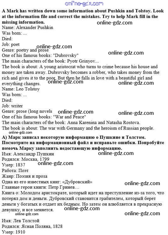 Готовые домашние задания по Английскому языку за 8 класс Учебник Кауфман Happy English 2012 - Урок 1-2-3 Unit 7. Russian writers and poets A