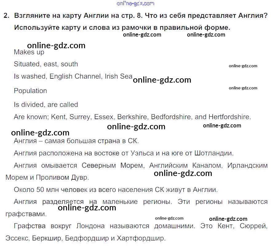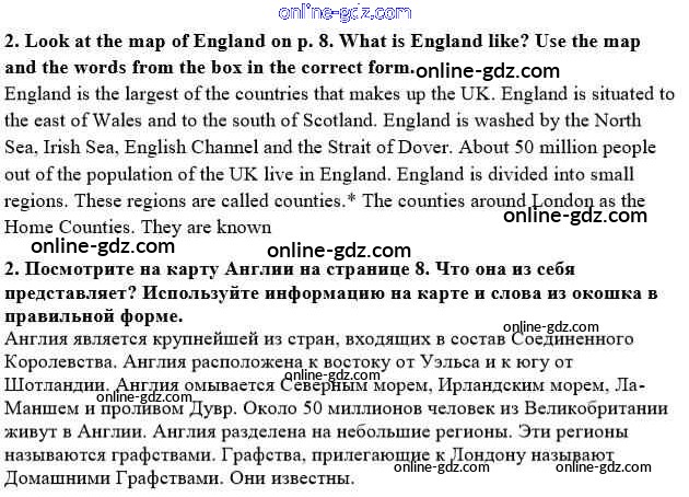 Готовые домашние задания по Английскому языку за 8 класс Учебник Кузовлев, Лапа 2015 - lesson 1 Unit 1. My country at a glance 2