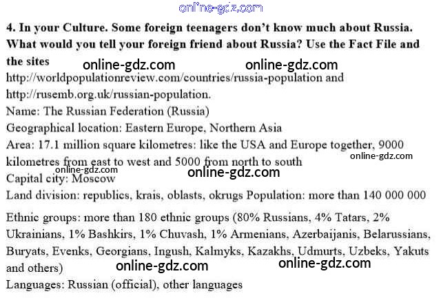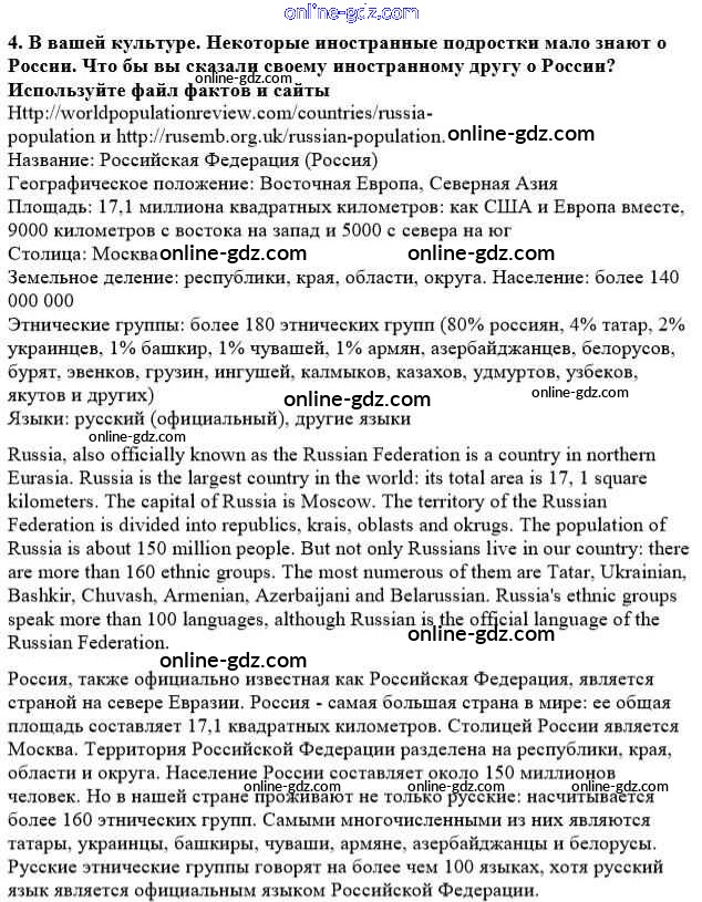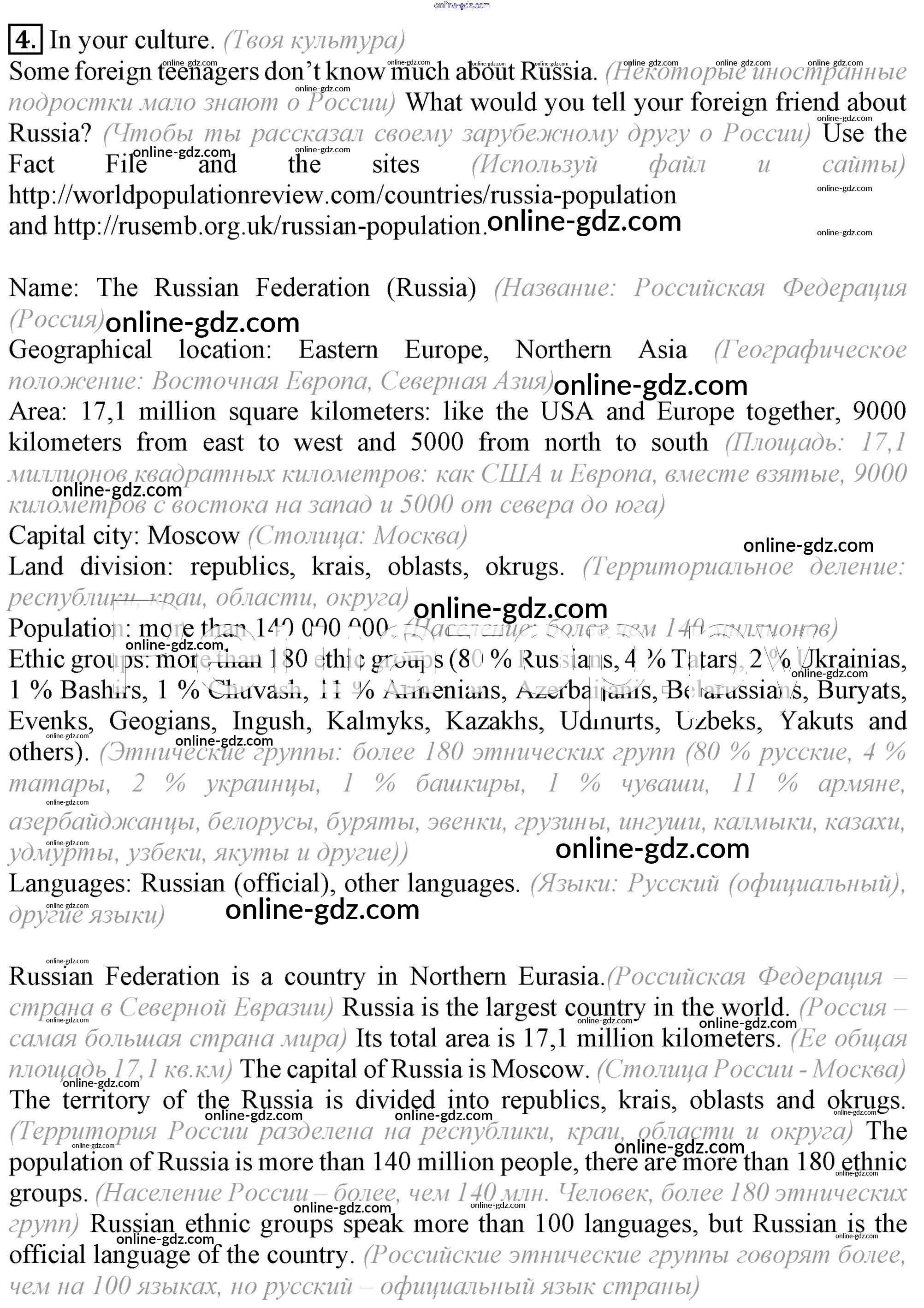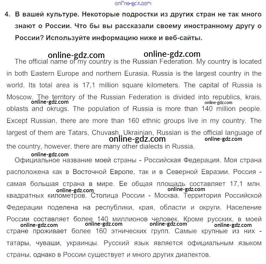 Готовые домашние задания по Английскому языку за 8 класс Учебник Кузовлев, Лапа 2015 - lesson 1 Unit 1. My country at a glance 4