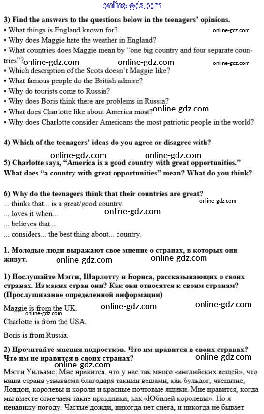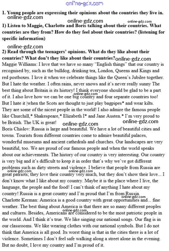 Готовые домашние задания по Английскому языку за 8 класс Учебник Кузовлев, Лапа 2015 - lesson 6 Unit 1. My country at a glance 1