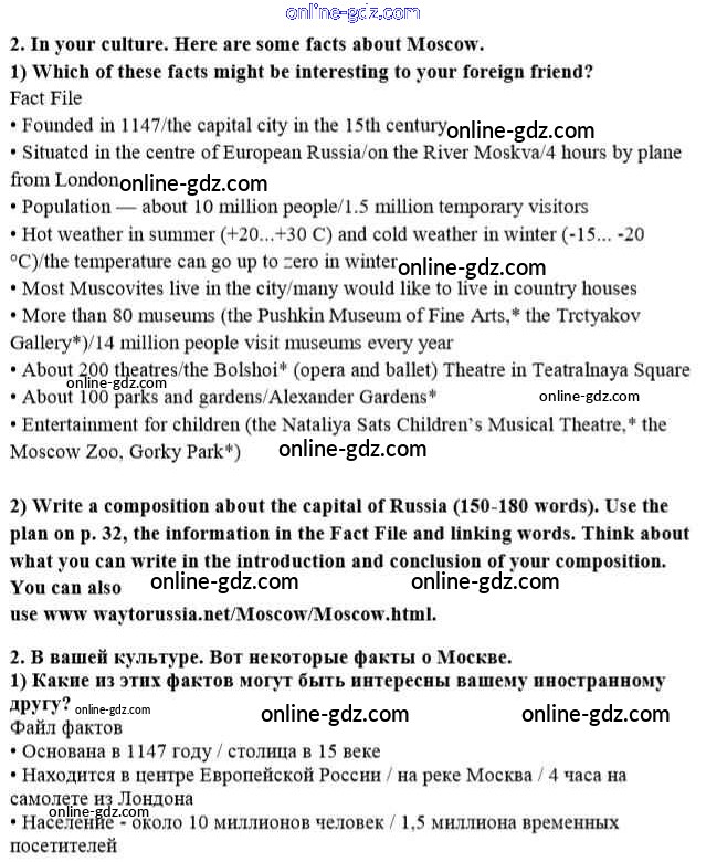 Готовые домашние задания по Английскому языку за 8 класс Учебник Кузовлев, Лапа 2015 - lesson 8-9 Unit 1. My country at a glance 2