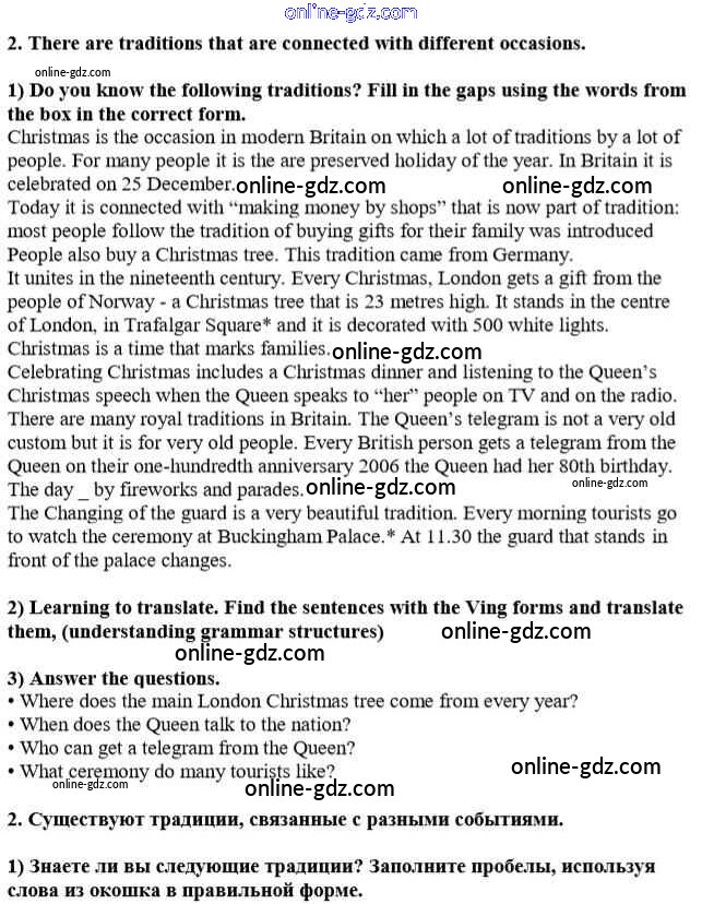 Готовые домашние задания по Английскому языку за 8 класс Учебник Кузовлев, Лапа 2015 - lesson 1 Unit 2. Is your country a land of traditions? 2