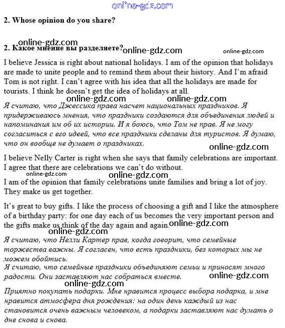 Готовые домашние задания по Английскому языку за 8 класс Учебник Кузовлев, Лапа 2015 - lesson 6 Unit 2. Is your country a land of traditions? 2