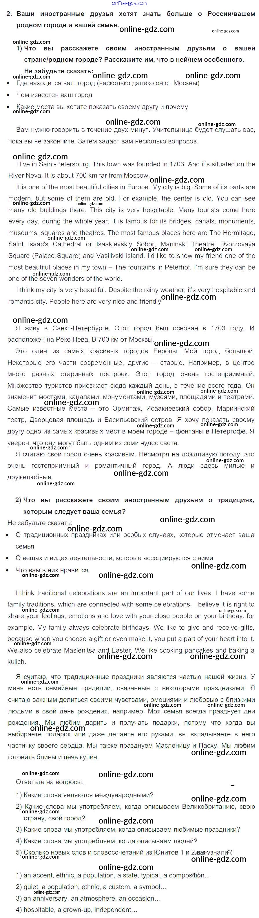 Готовые домашние задания по Английскому языку за 8 класс Учебник Кузовлев, Лапа 2015 - lesson 11-12 Unit 2. Is your country a land of traditions? 2