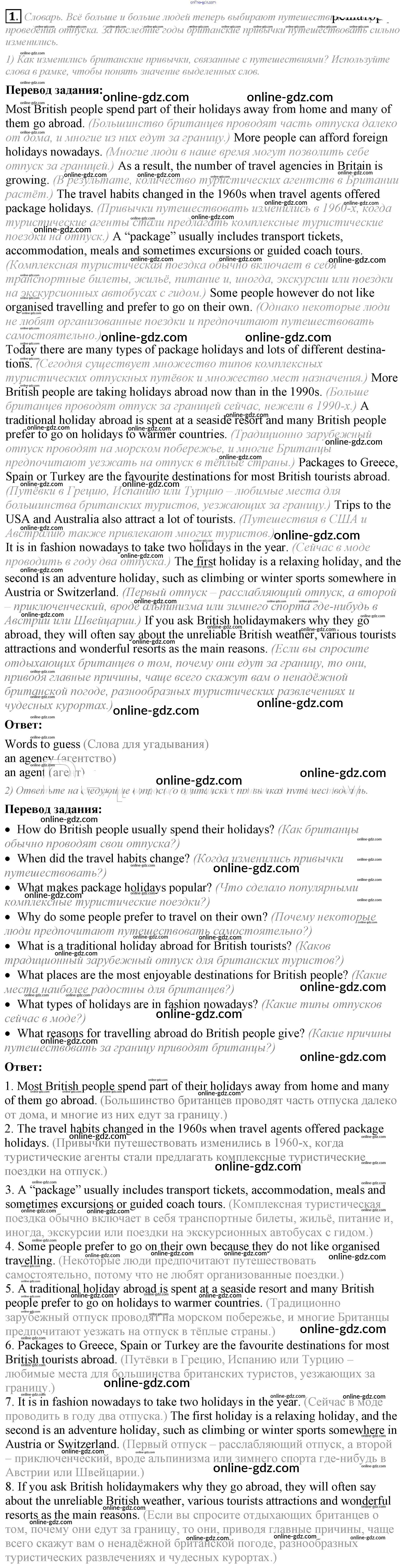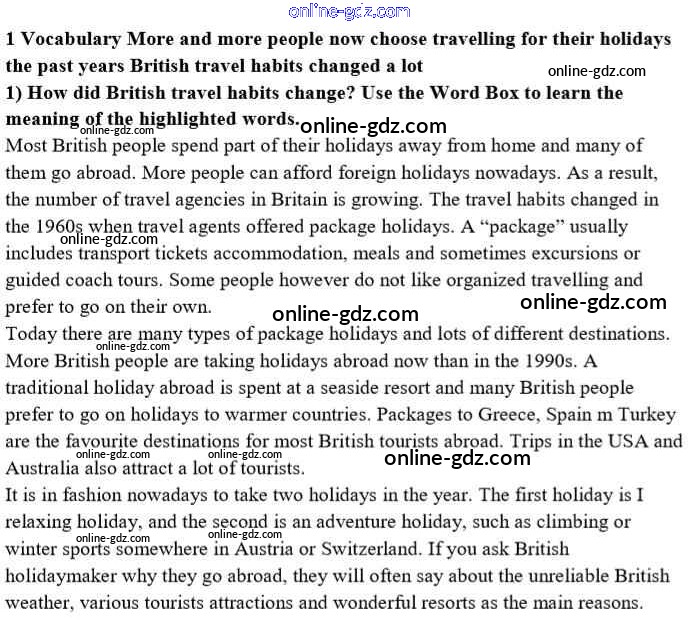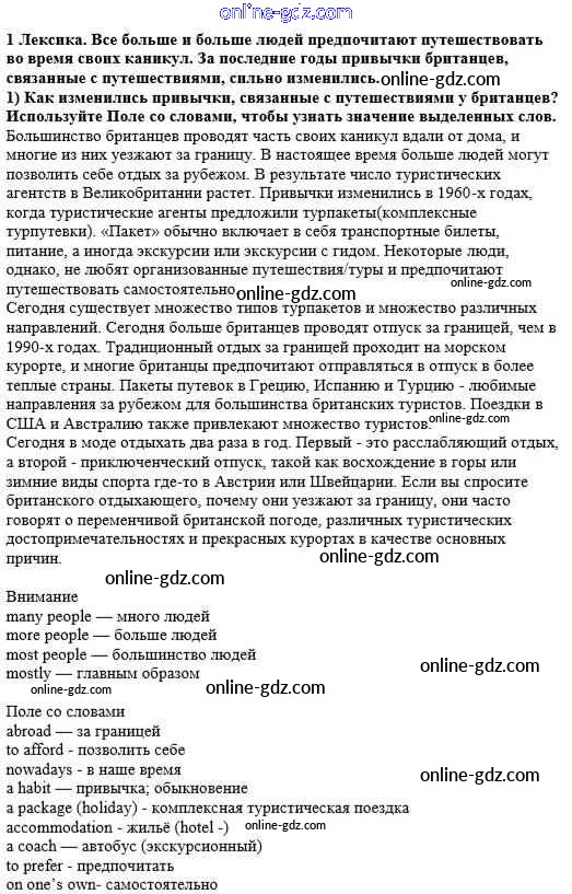 Готовые домашние задания по Английскому языку за 8 класс Учебник Кузовлев, Лапа 2015 - lesson 1 Unit 3. Do you like travelling? 1