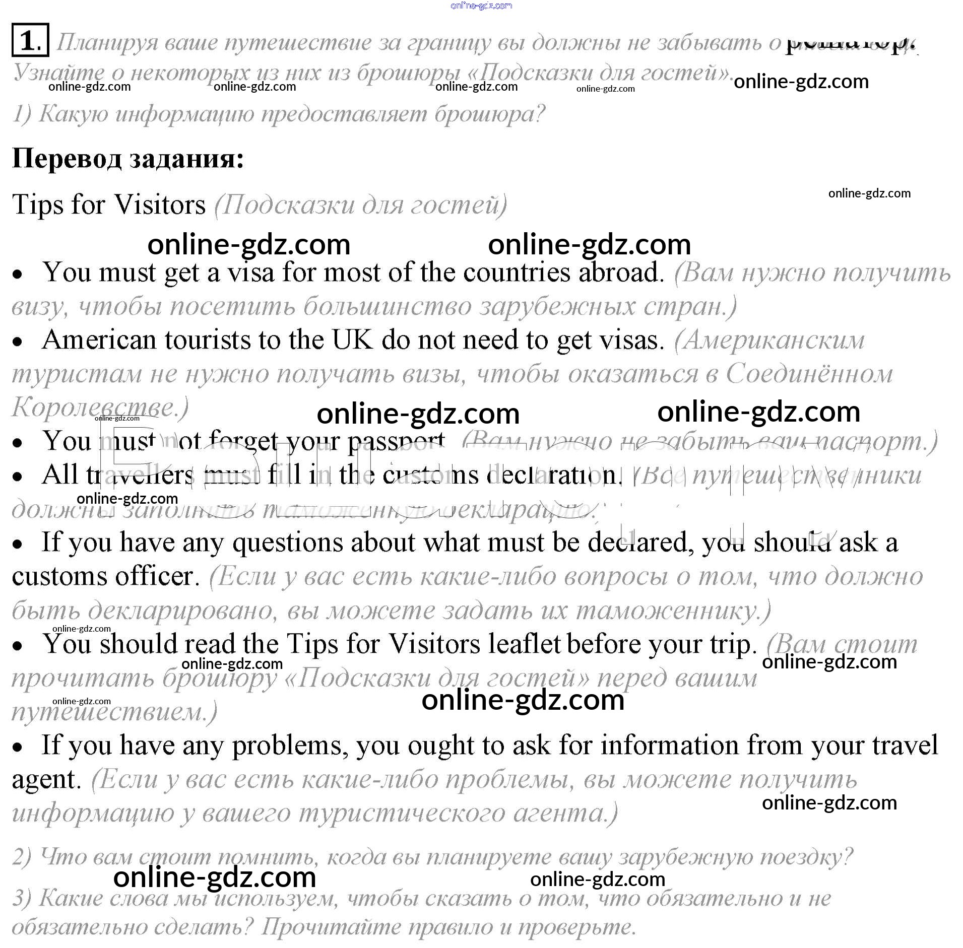 Готовые домашние задания по Английскому языку за 8 класс Учебник Кузовлев, Лапа 2015 - lesson 2 Unit 3. Do you like travelling? 1