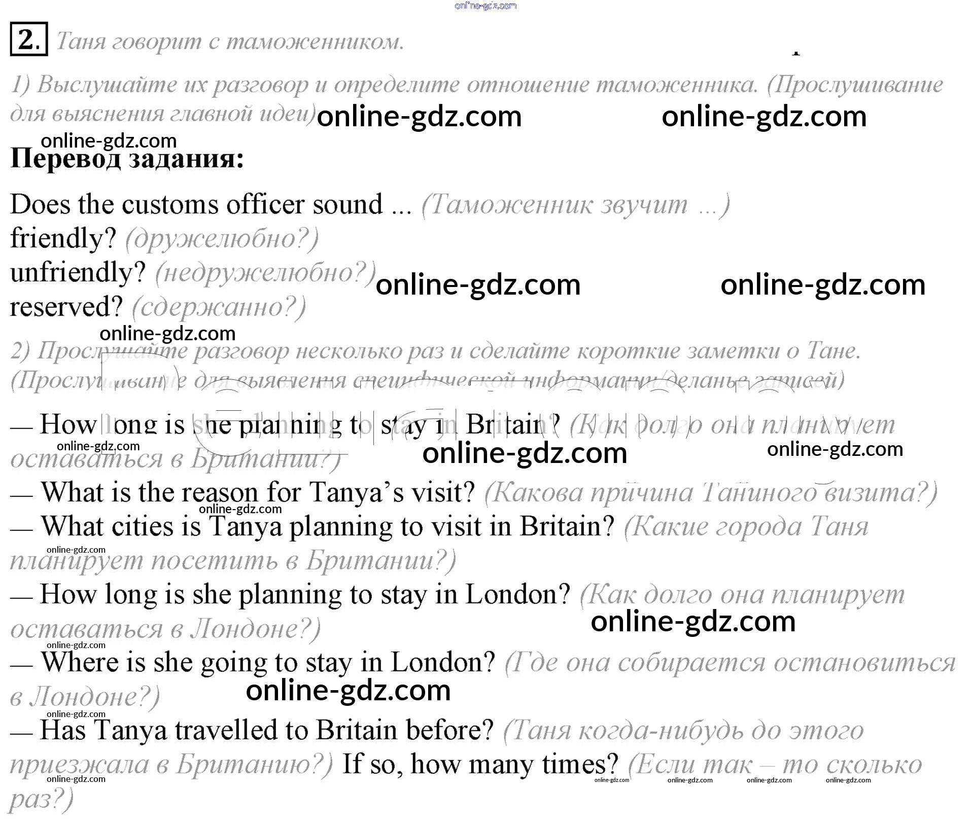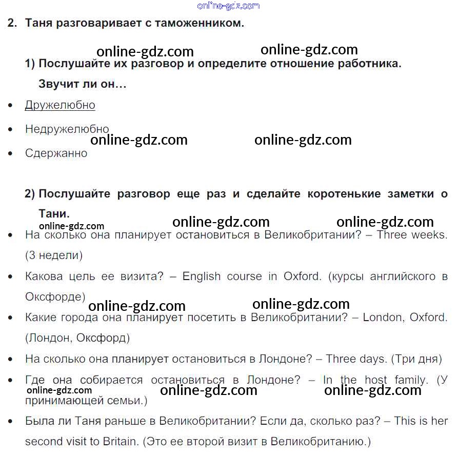 Готовые домашние задания по Английскому языку за 8 класс Учебник Кузовлев, Лапа 2015 - lesson 5 Unit 3. Do you like travelling? 2