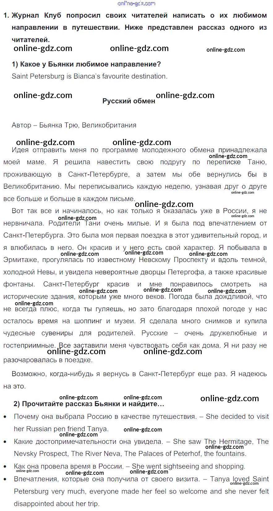 Готовые домашние задания по Английскому языку за 8 класс Учебник Кузовлев, Лапа 2015 - lesson 8-9 Unit 3. Do you like travelling? 1
