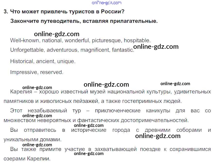 Готовые домашние задания по Английскому языку за 8 класс Учебник Кузовлев, Лапа 2015 - lesson 8-9 Unit 3. Do you like travelling? 3
