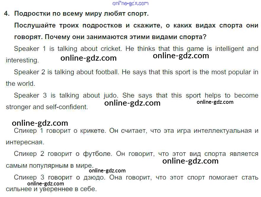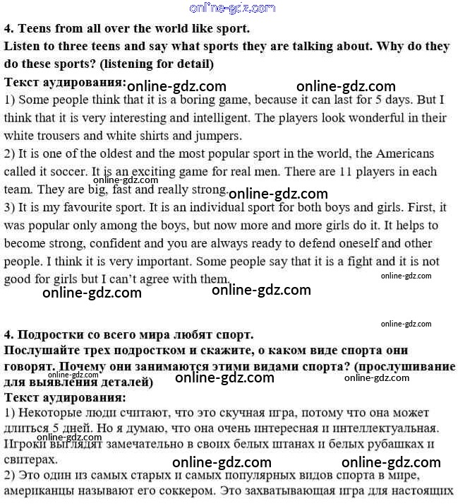 Готовые домашние задания по Английскому языку за 8 класс Учебник Кузовлев, Лапа 2015 - lesson 1 Unit 4. Are you fond of sport? 4