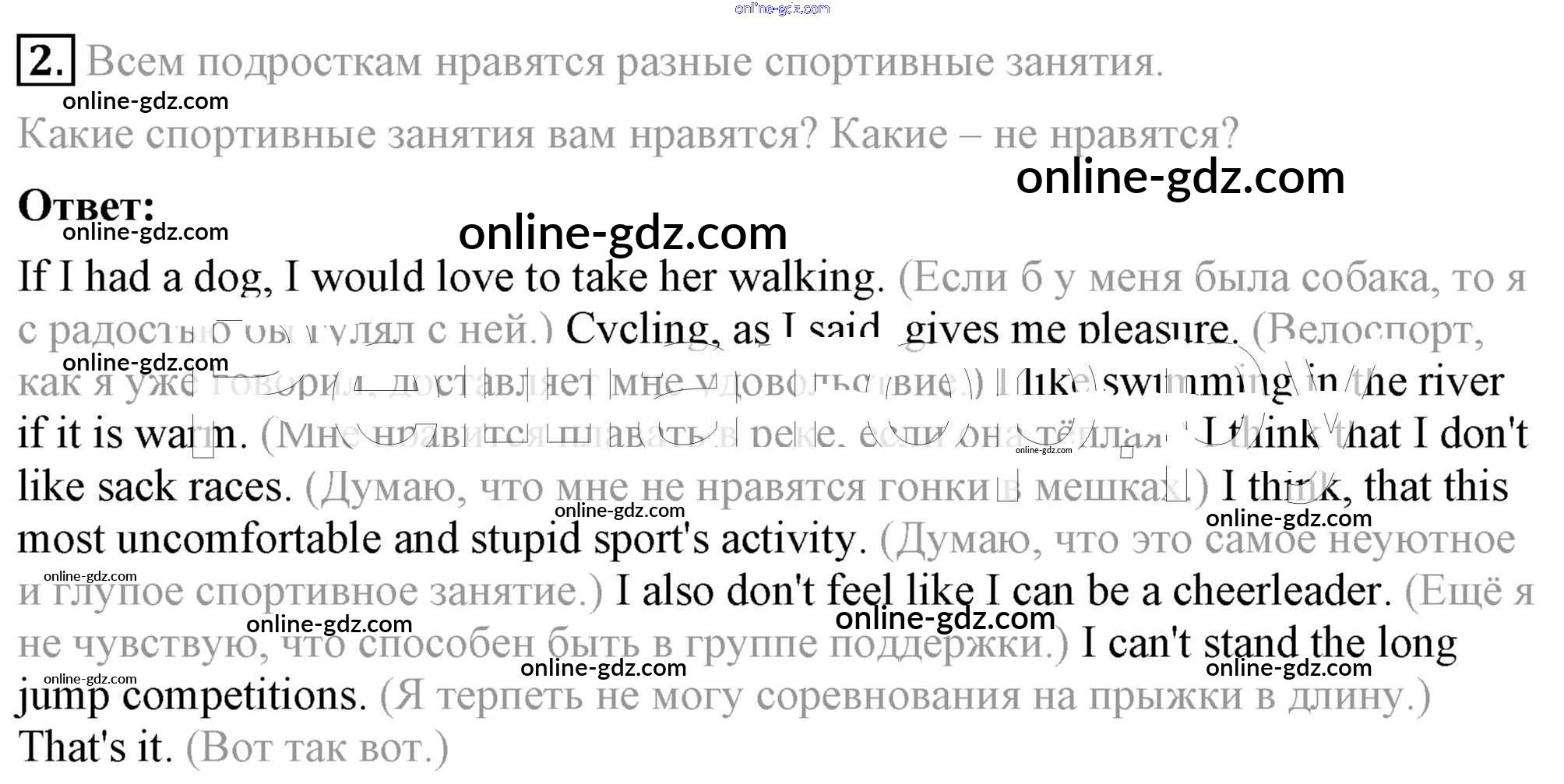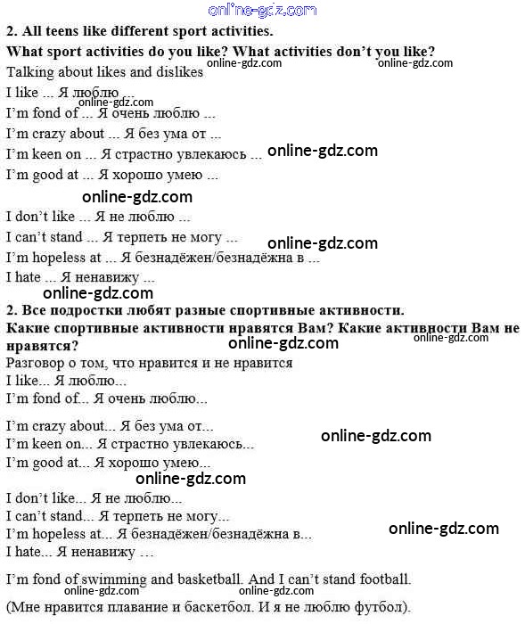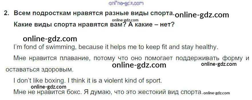 Готовые домашние задания по Английскому языку за 8 класс Учебник Кузовлев, Лапа 2015 - lesson 2 Unit 4. Are you fond of sport? 2