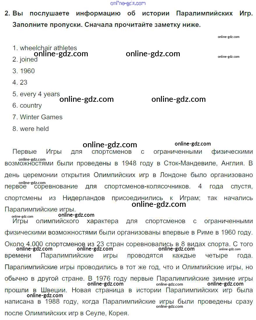 Готовые домашние задания по Английскому языку за 8 класс Учебник Кузовлев, Лапа 2015 - lesson 5 Unit 4. Are you fond of sport? 2