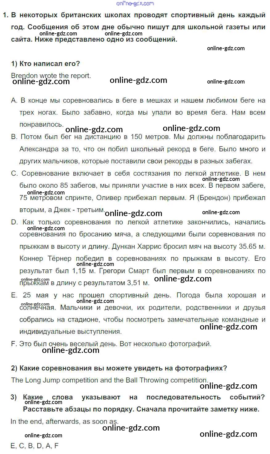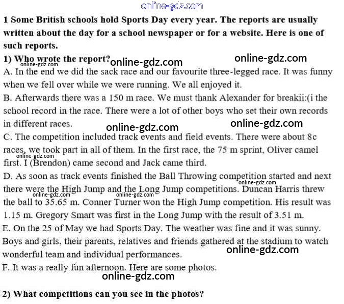 Готовые домашние задания по Английскому языку за 8 класс Учебник Кузовлев, Лапа 2015 - lesson 8-9 Unit 4. Are you fond of sport? 1