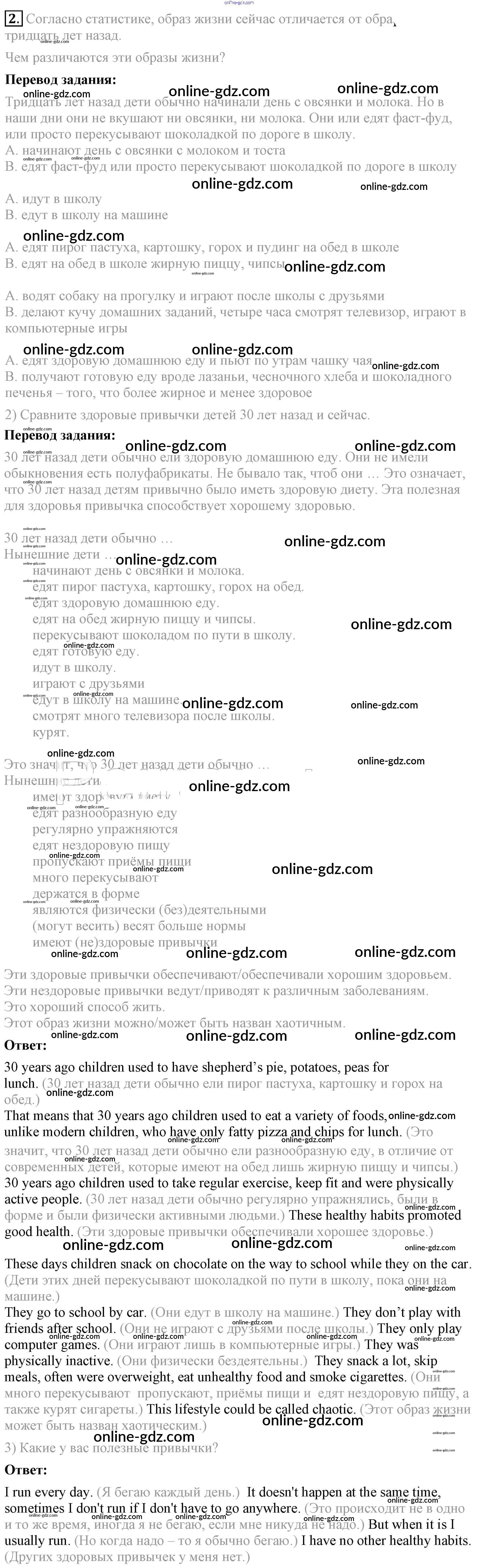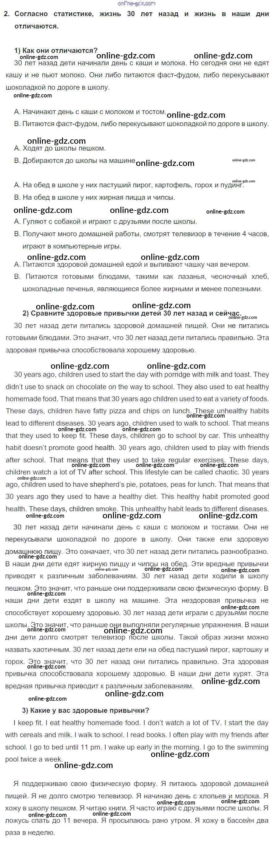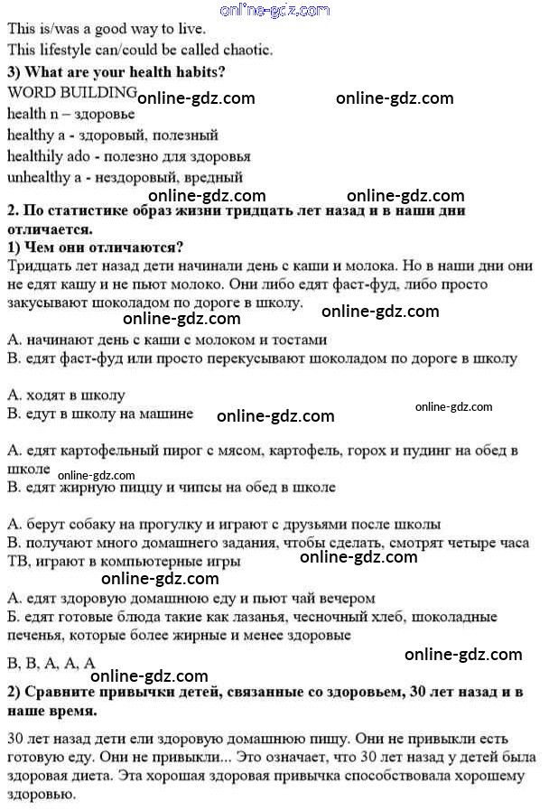 Готовые домашние задания по Английскому языку за 8 класс Учебник Кузовлев, Лапа 2015 - lesson 1 Unit 5. A healthy living guide 2