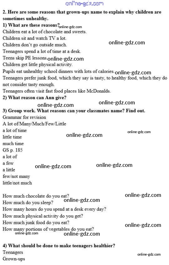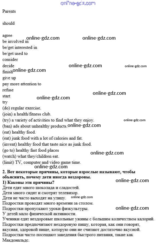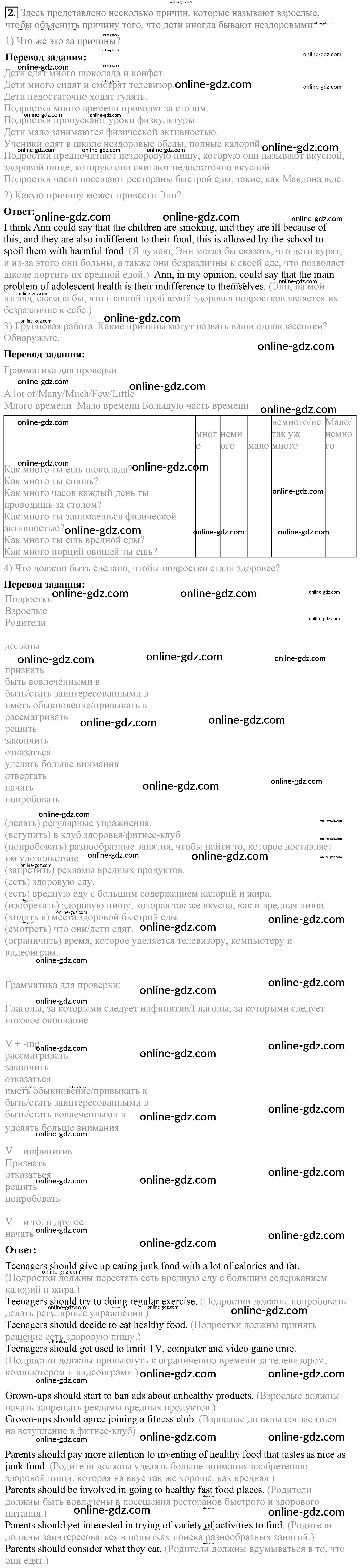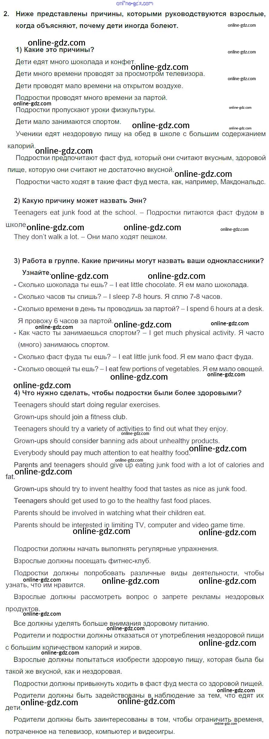 Готовые домашние задания по Английскому языку за 8 класс Учебник Кузовлев, Лапа 2015 - lesson 2 Unit 5. A healthy living guide 2