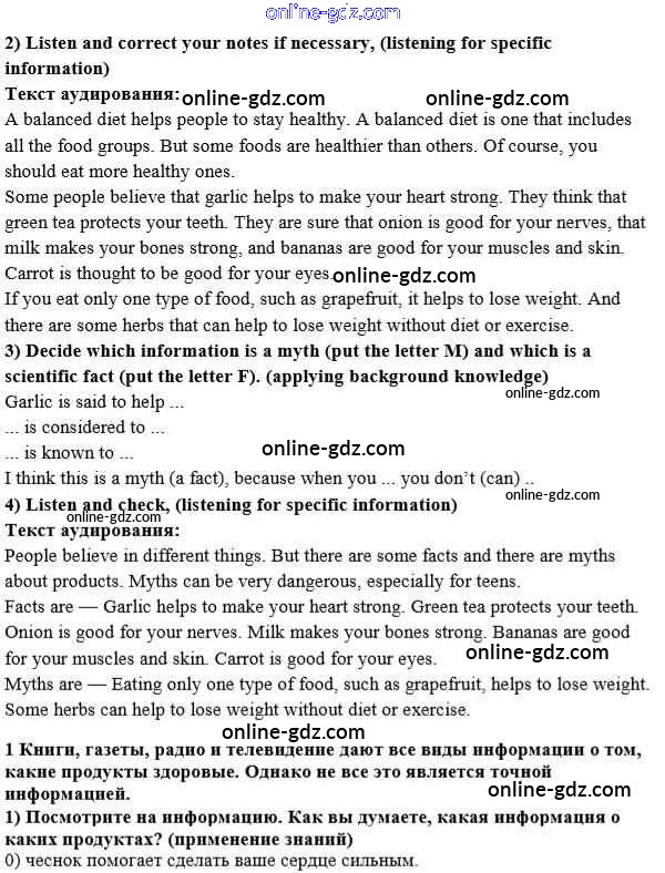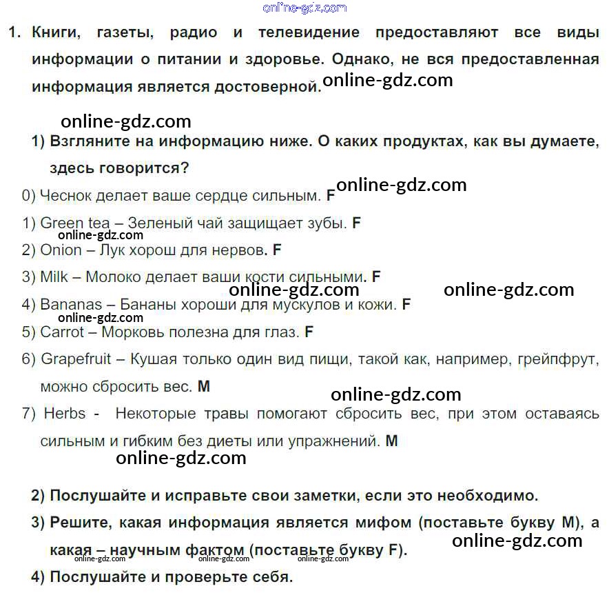 Готовые домашние задания по Английскому языку за 8 класс Учебник Кузовлев, Лапа 2015 - lesson 5 Unit 5. A healthy living guide 1