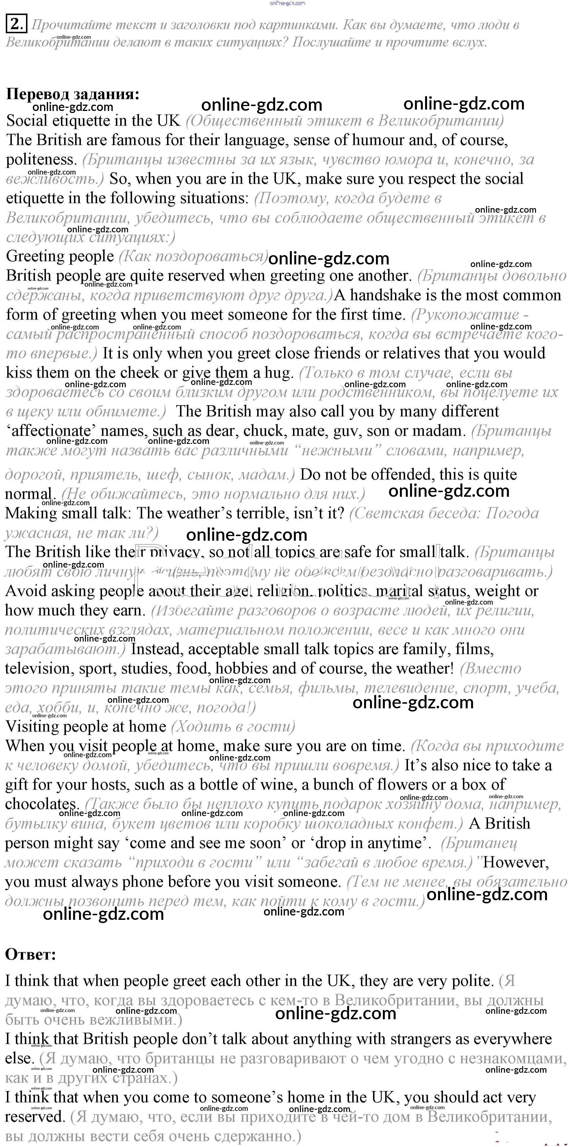 Готовые домашние задания по Английскому языку за 8 класс Учебник Ваулина, Дули Spotlight 2015 - Culture corner Module 1 2