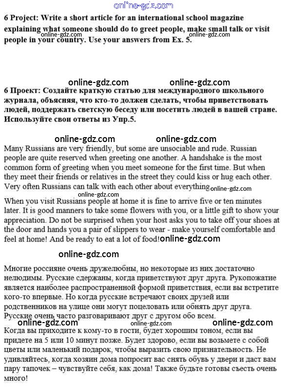 Готовые домашние задания по Английскому языку за 8 класс Учебник Ваулина, Дули Spotlight 2015 - Culture corner Module 1 6