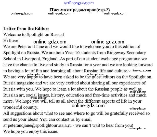 Готовые домашние задания по Английскому языку за 8 класс Учебник Ваулина, Дули Spotlight 2015 - Spotlight on Russia (страницы) 2