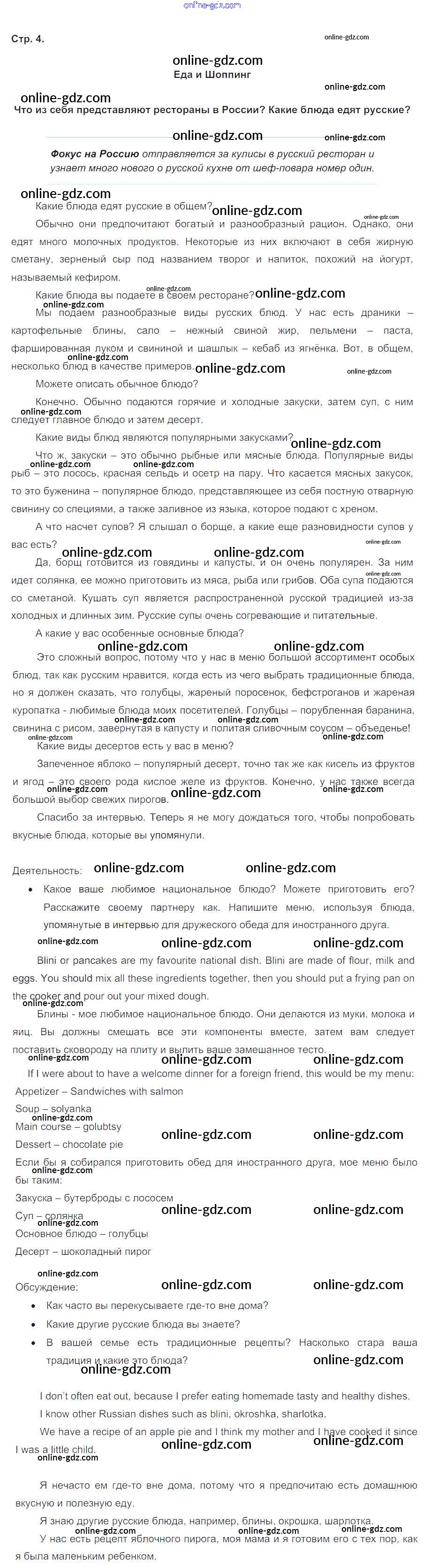 Готовые домашние задания по Английскому языку за 8 класс Учебник Ваулина, Дули Spotlight 2015 - Spotlight on Russia (страницы) 4