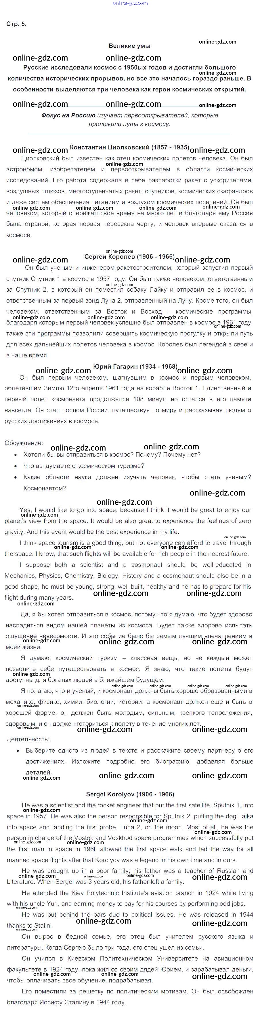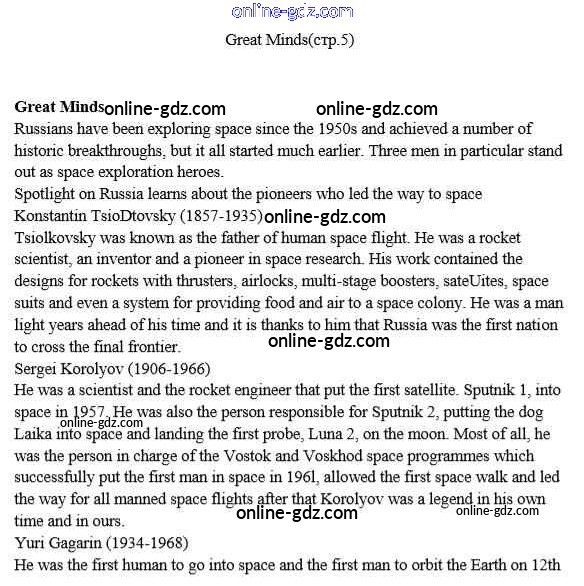Готовые домашние задания по Английскому языку за 8 класс Учебник Ваулина, Дули Spotlight 2015 - Spotlight on Russia (страницы) 5