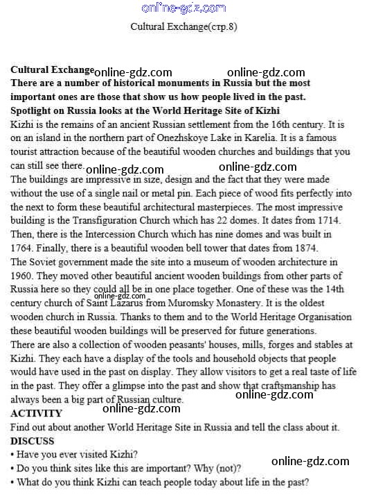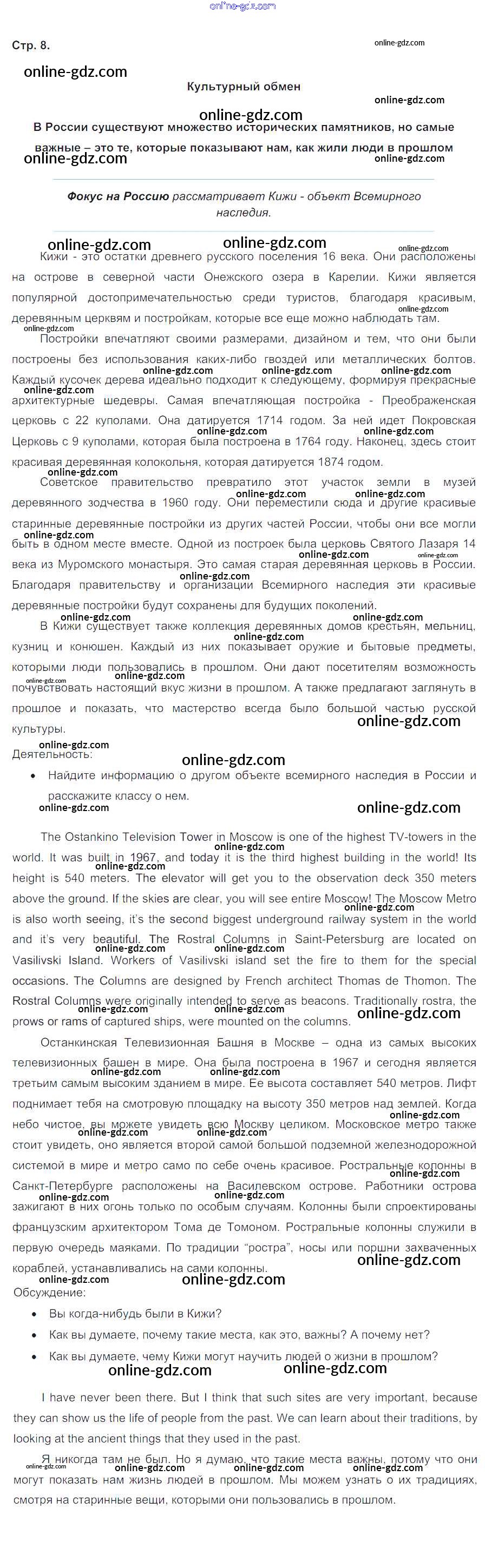 Готовые домашние задания по Английскому языку за 8 класс Учебник Ваулина, Дули Spotlight 2015 - Spotlight on Russia (страницы) 8