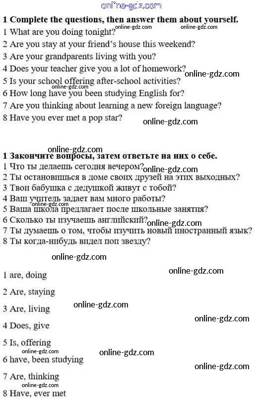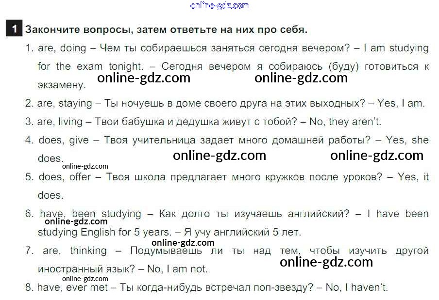 Готовые домашние задания по Английскому языку за 8 класс Учебник Ваулина, Дули Spotlight 2015 - Module 1 Grammar Check 1