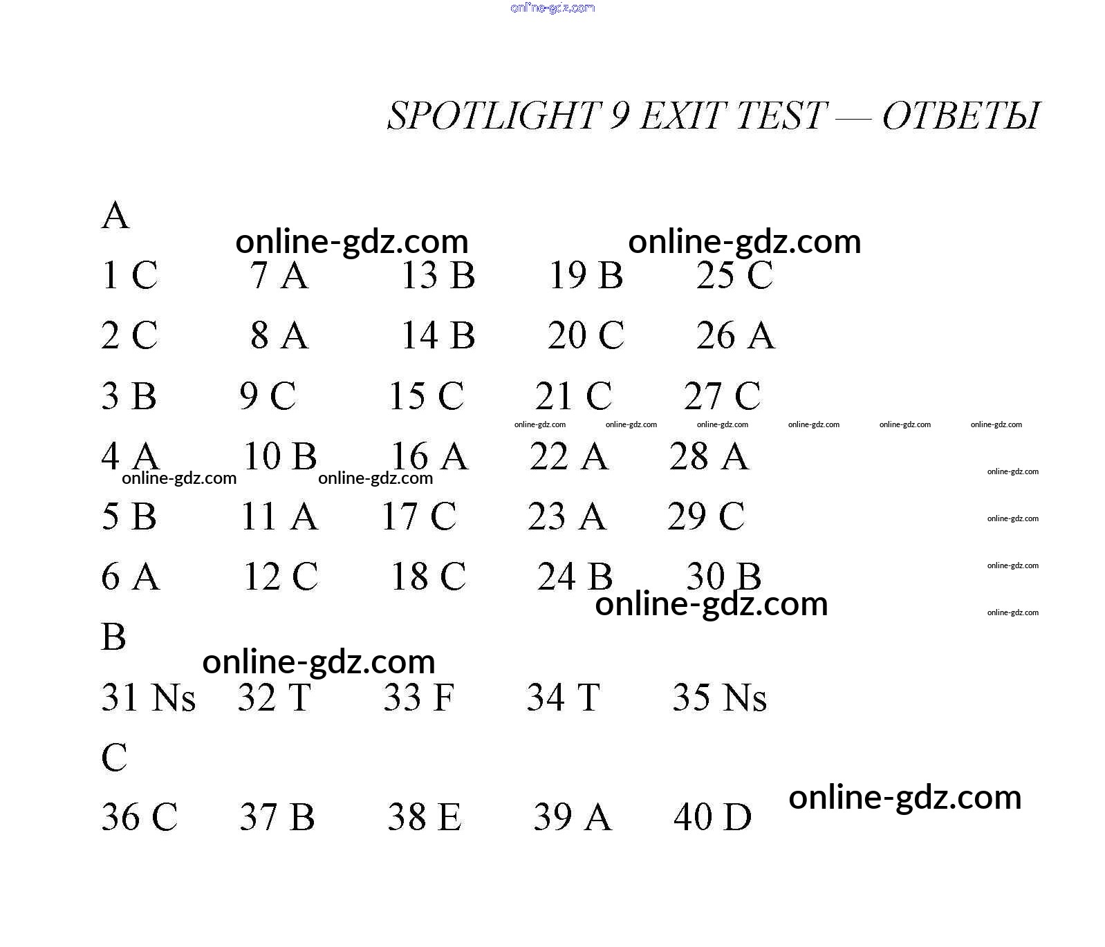 Готовые домашние задания по Английскому языку за 9 класс Контрольные задания Ваулина, Дули Spotlight 2018 - Заключительный тест Тест