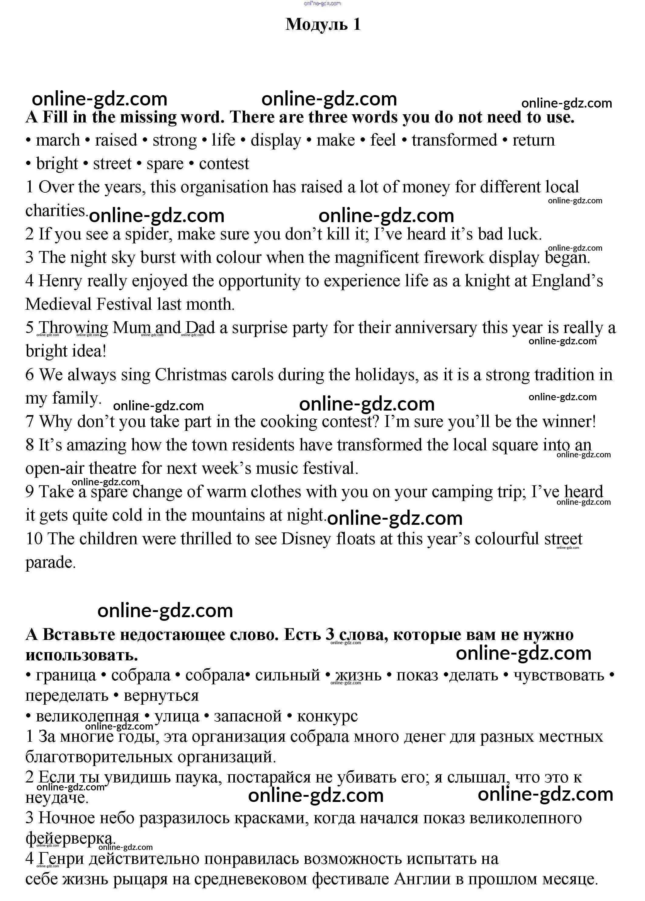 Готовые домашние задания по Английскому языку за 9 класс Контрольные задания Ваулина, Дули Spotlight 2018 - Модуль 1 A