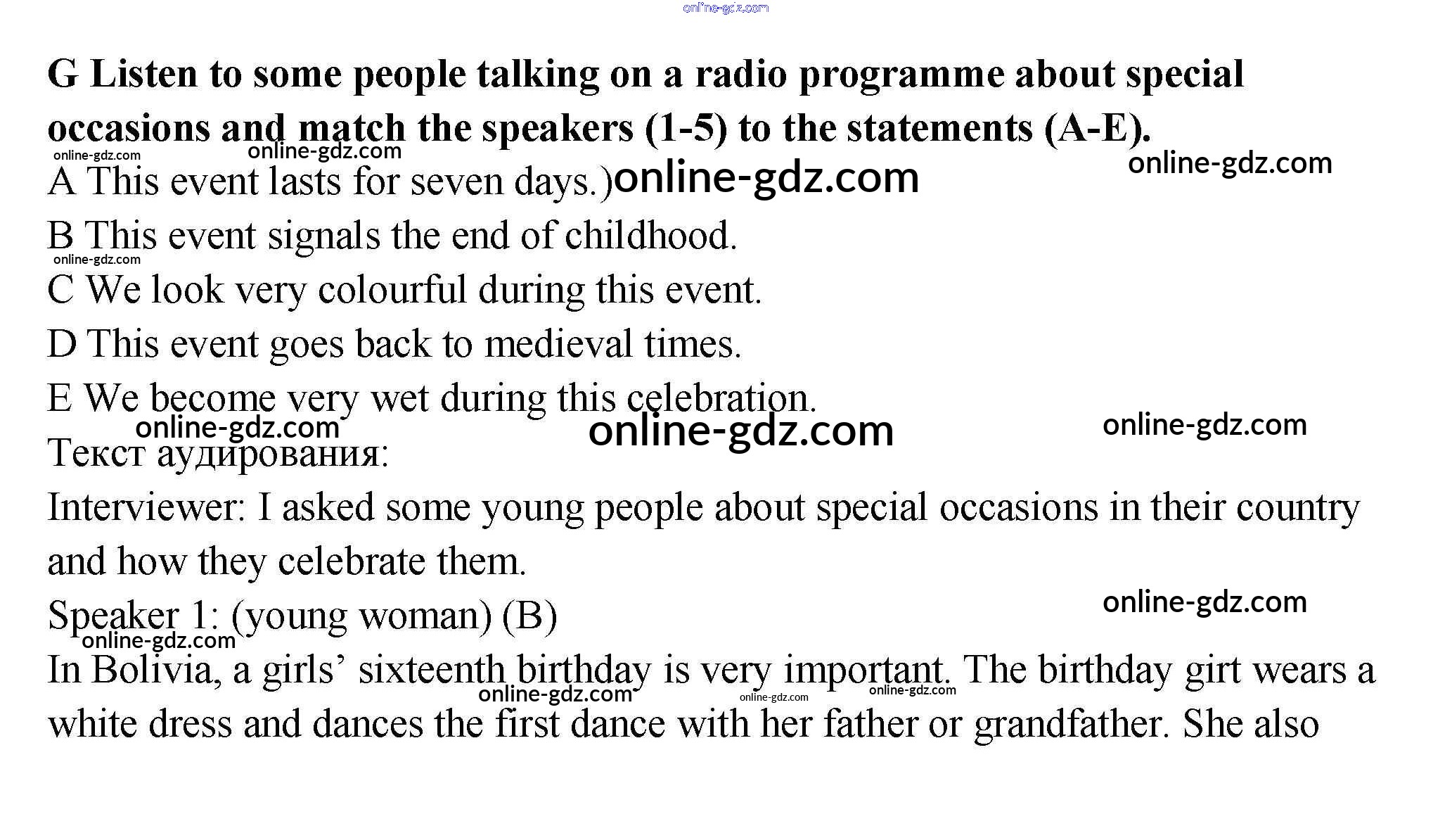 Готовые домашние задания по Английскому языку за 9 класс Контрольные задания Ваулина, Дули Spotlight 2018 - Модуль 1 G